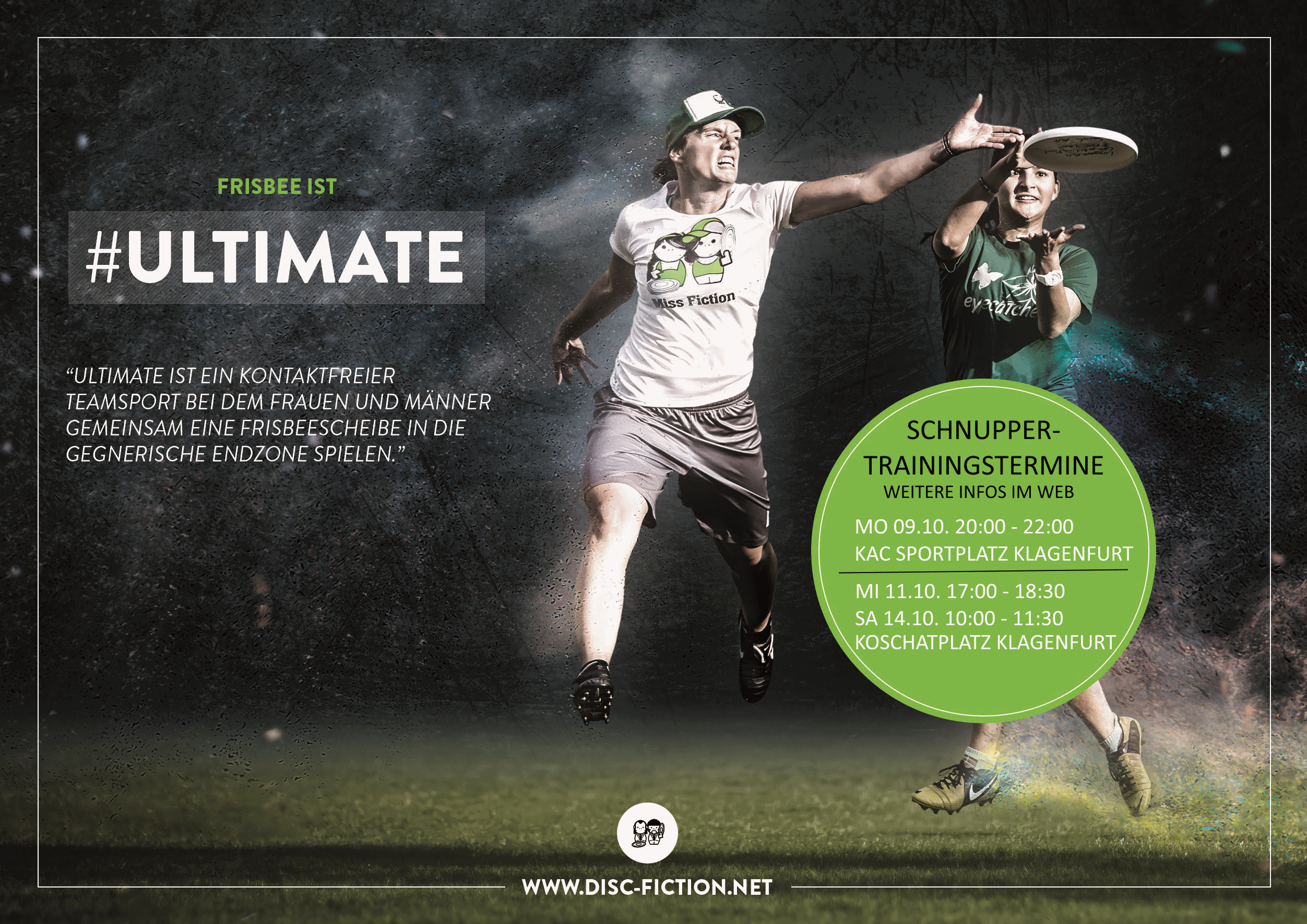 [dropcap]D[/dropcap]u möchtest uns und unsere Sportart kennenlernen? Wissen was es mit Forehand, Stack und Huck auf sich hat? Dann schau zu einem der Schnuppertrainingstermine am KAC Platz (Magazingasse 14) und Koschatplatz (Koschatstraße 15) vorbei. Wir laden alle – kostenlos und…